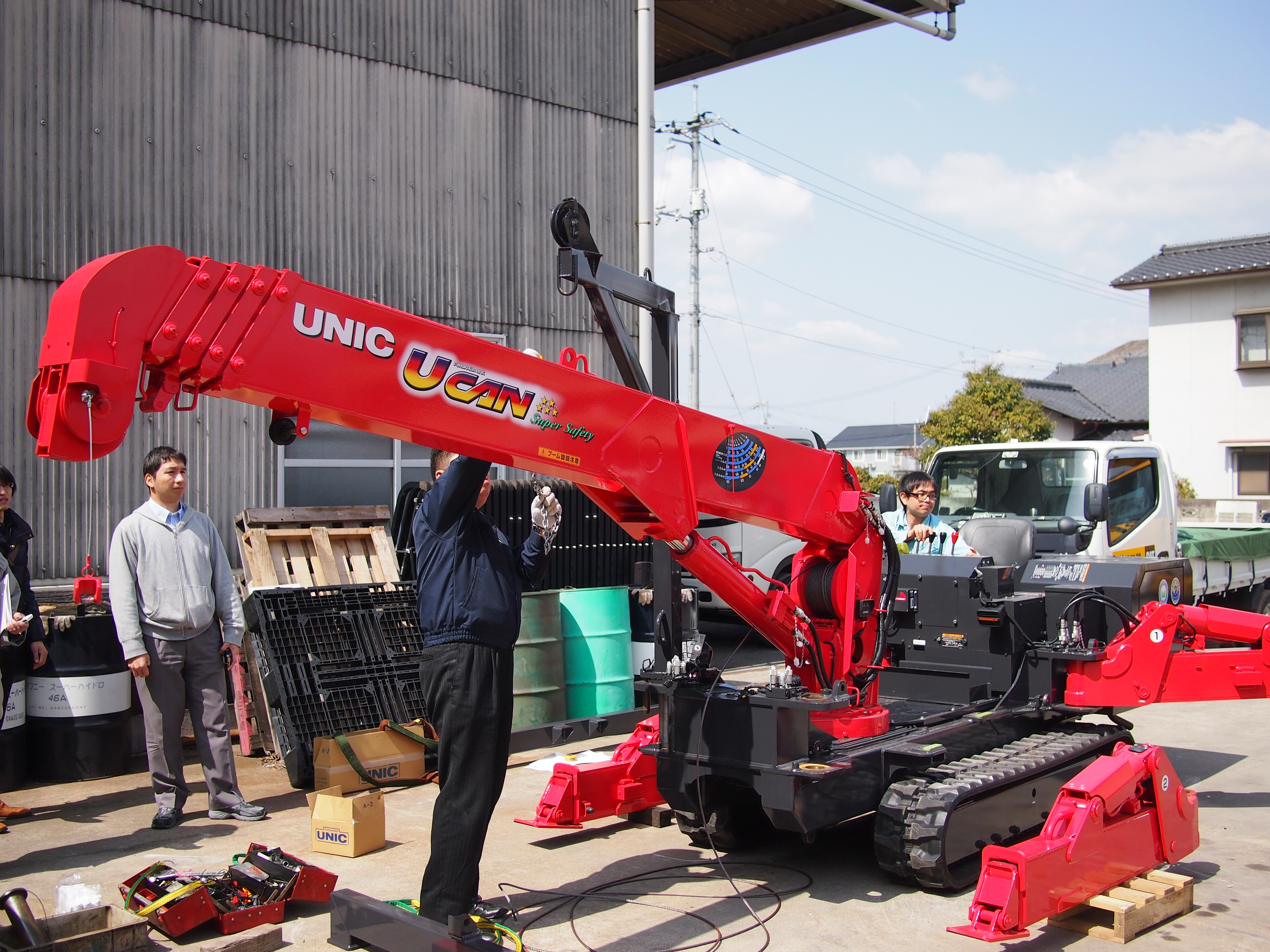 2 まず、自分でアウトリガを吊りながら外していきます。