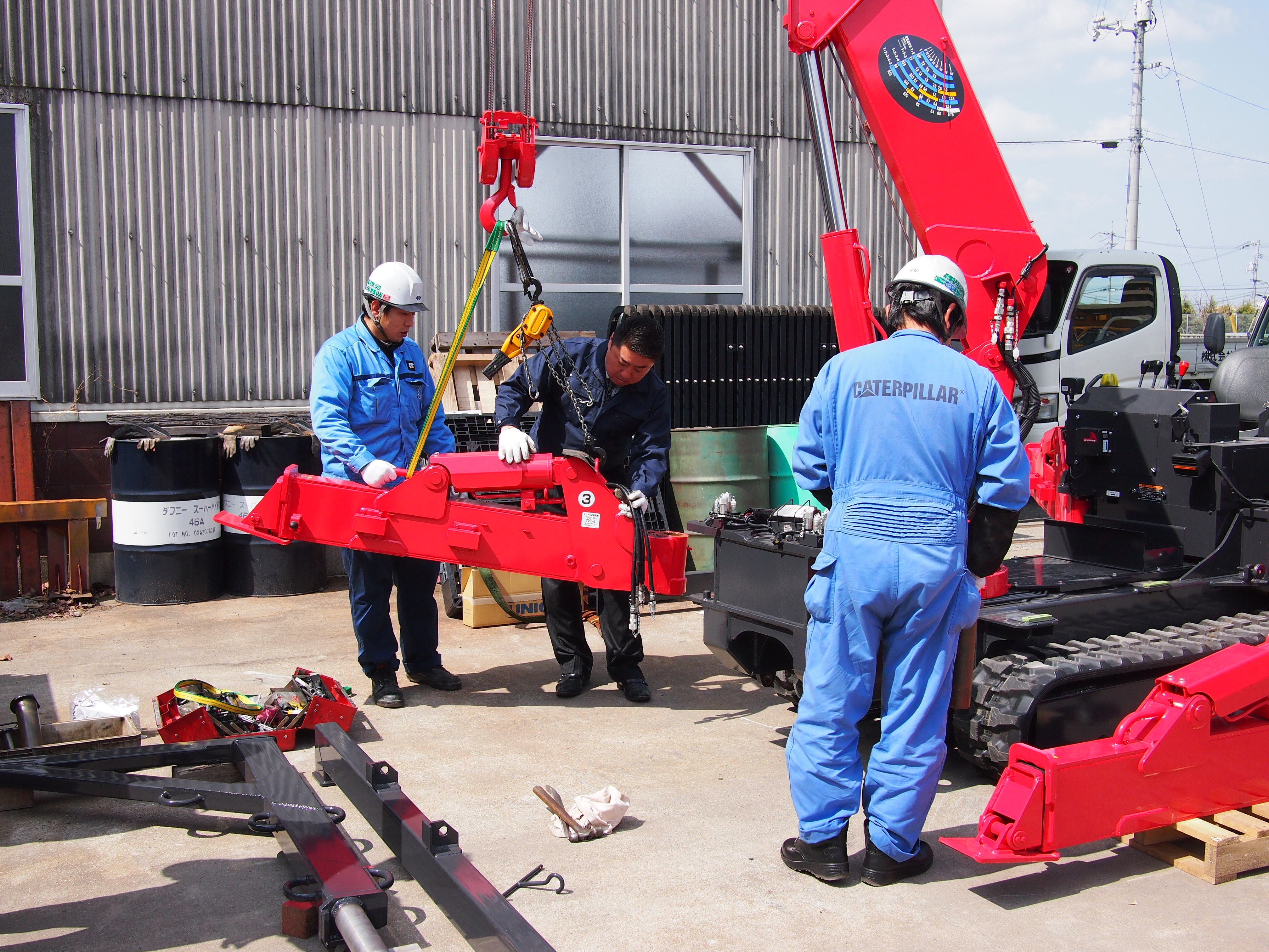 3 次に、冶具を取り付けて自分のブームを吊りながら外します。