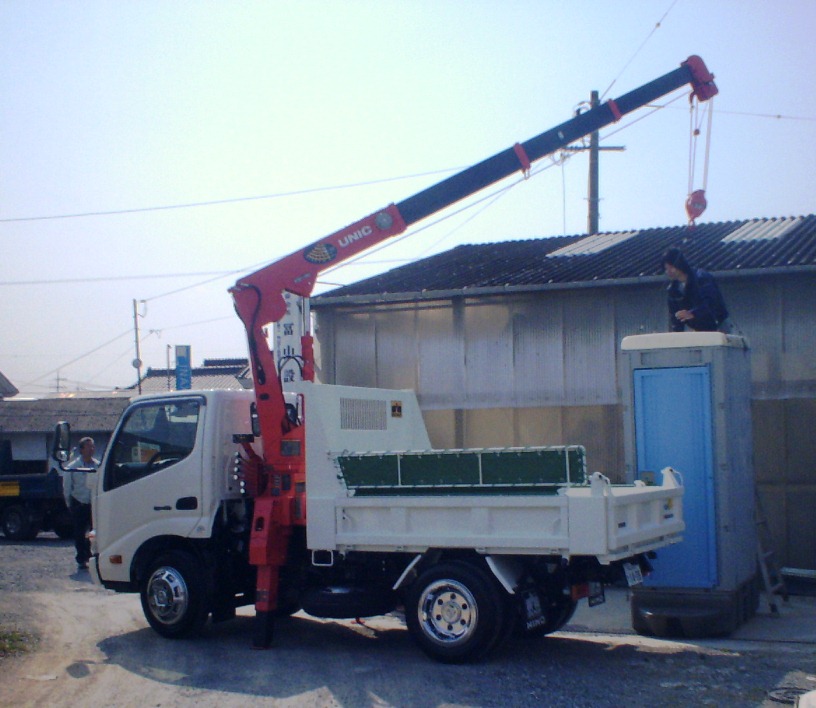 2.22t吊り4段ブーム・小型車用ポップアップ式ユニッククレーン スペックは → UR-P244RS荷台内架装型 ダンプへ取付